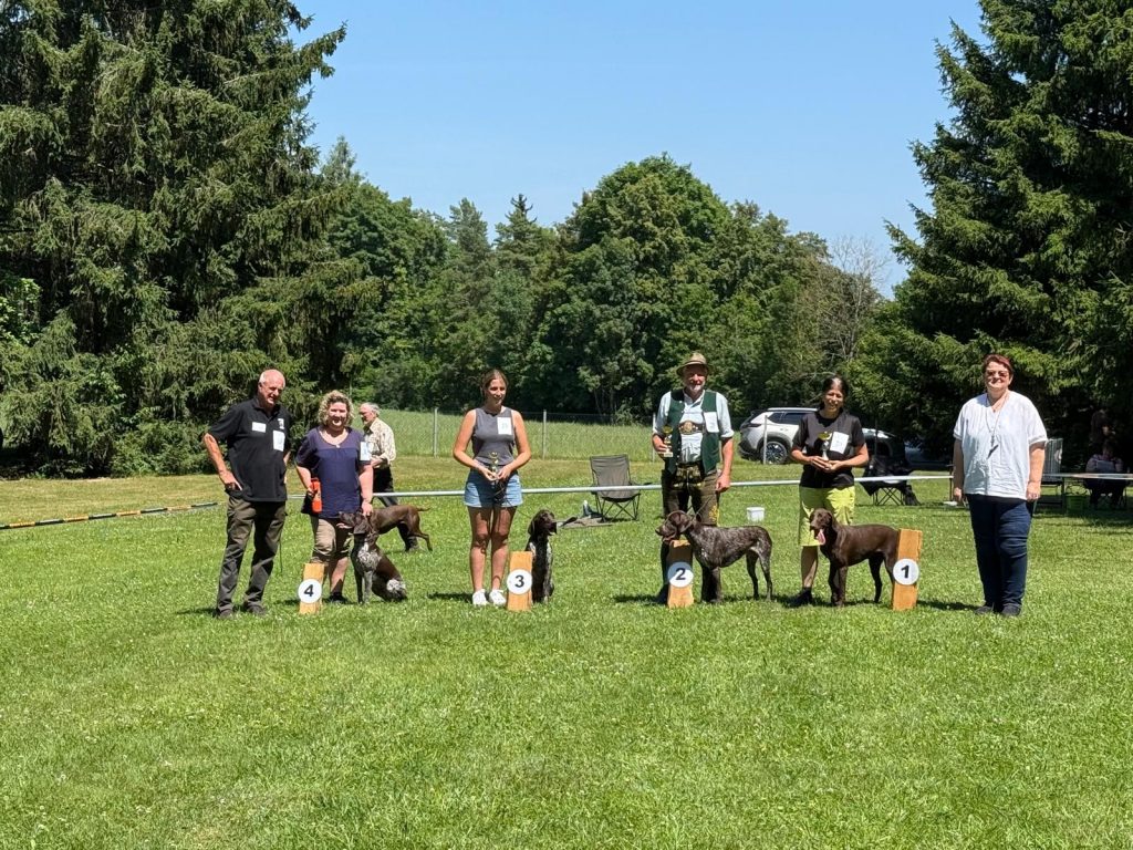Unser B-Wurf startete in diesem Jahr in der Jugendklasse bei der Zuchtschau. Baco, Benno, Bailey & Bina konnten den Formwert SG erhalten. Amika & Aska wurden als Teilnehmer der IKP 2025 vorgestellt. Besonders freuten wir uns auf unsere Youngsters des C-Wurfes Carlo, Creed & Cleo. Zusammen konnten wir unsere Zuchtgruppe vom Dexterhof vorstellen. Danke fürs Kommen!